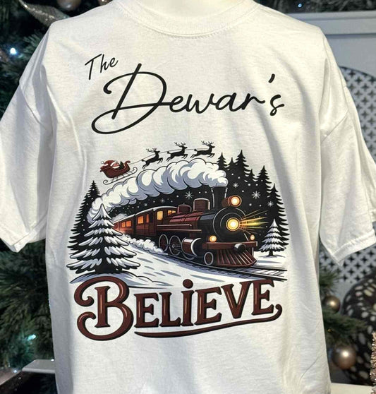 🎅Christmas Personalised Kids/Adult Family T-Shirts 🎄The Polar Express Train Believe