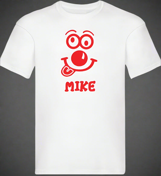 Personalised Kids/Adult White T-Shirt Red Nose Day (Name/Splat Design)