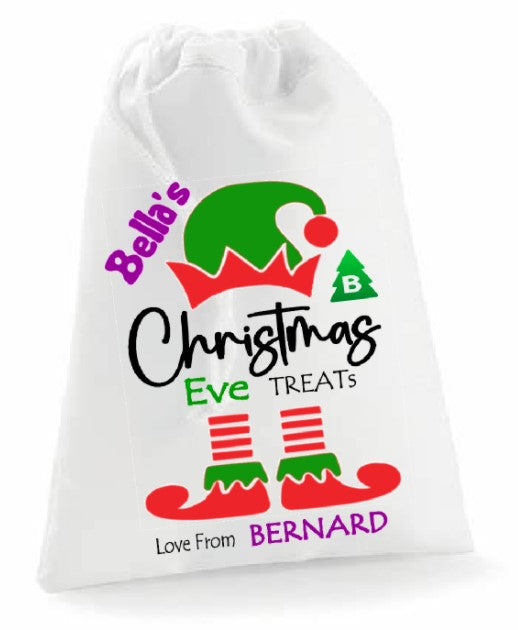 Personalised Elf Christmas Eve Drawstring Bag With Name