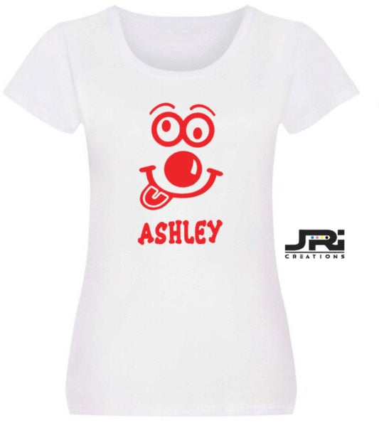 Personalised Ladies T-Shirt Red Nose Day (Name/Nose Design)